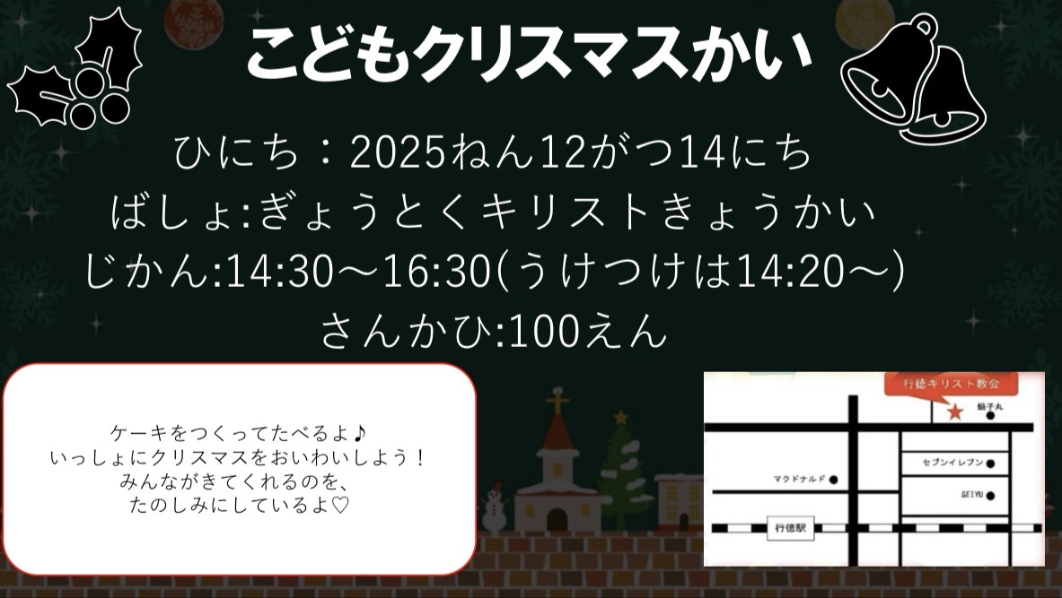 12月14日の日曜日は14時15分から毎年恒例のCSクリスマス会を行います!